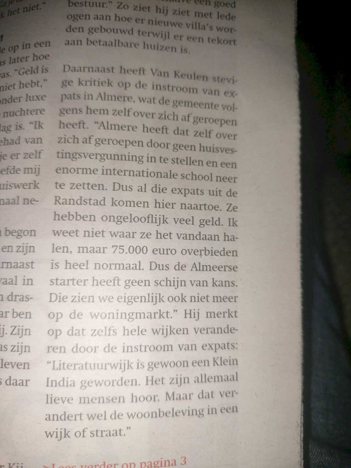 Papieren versie waarom het in Almere dus fout gaat. Overbieden door expats.